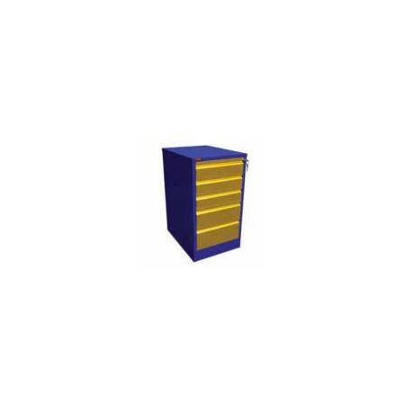Тумба для слесарного верстака состоит из 5-ти выдвижных ящиков закрепленных на телескопических направляющих. Все ящики умбы запираются на центральный замок повышенной секретности.