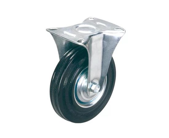 колесо литое неповоротное, предназначено для четырехколесных складских тележек используемых для перевозки грузов внутри помещений по бетонному, асфальтовому покрытиям.